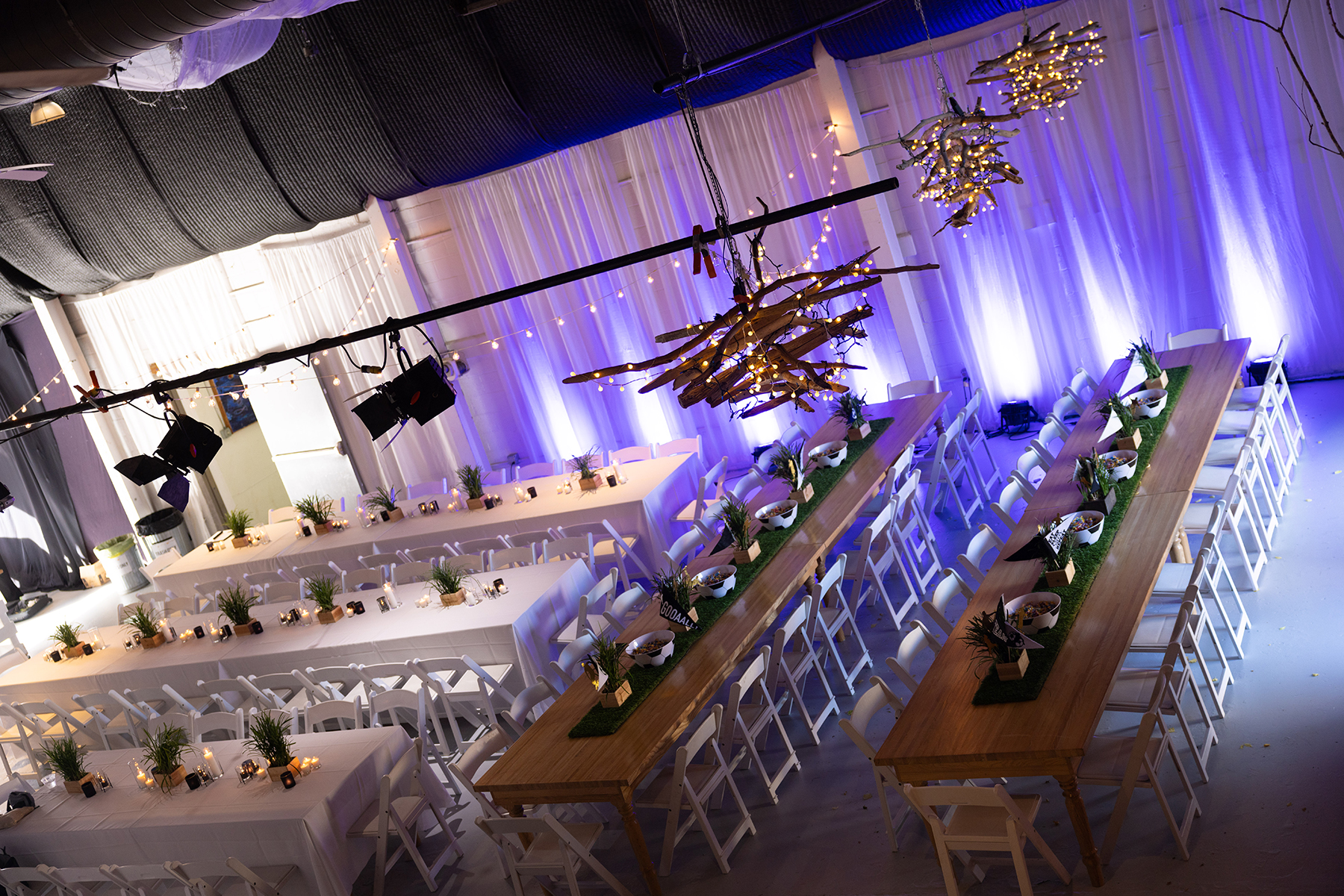 This raw, industrial space features two operational kitchens, outdoor space, and easy load-in/out access. Perfect for the couple who loves a blank canvas to make their own, or an organization looking for maximum space to host their next fundraiser or corporate gathering.